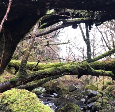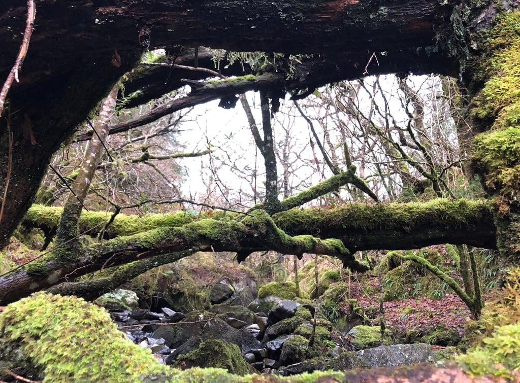 I always keep an eye out for filmy ferns (Hymenophyllum), partly because they are a useful indicator of good habitat for oceanic bryophytes and lichen, but mostly I just think they're great. So you can imagine my excitement at finding a nice big patch, growing as epiphytes on a large oak by a burn.