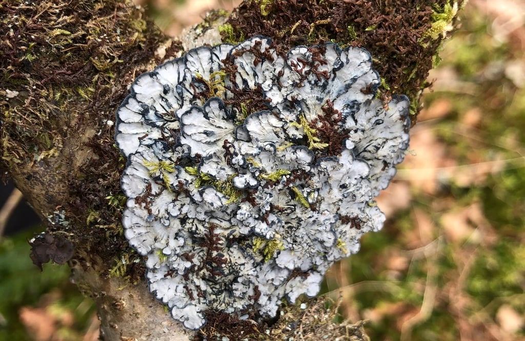 Pectenia cyanoloma is my new favourite lichen. Dobson says it looks a bit like a very old cow pat. Bit harsh I think. Perhaps that says something about me. It's bad enough being the one interested in lichens without picking the cowpat lookalike as your favourite.