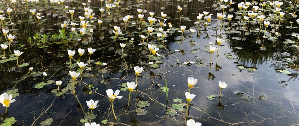 All these features fit with the idea that what we're looking at is R. peltatus - pond water-crowfoot.