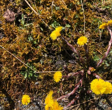 Tussilago farfara - Colt's foot - is a distinctive early-flowering species of the family Asteracea. It occurs on an impressive range of disturbed sites, from forestry tracks to sand dunes.